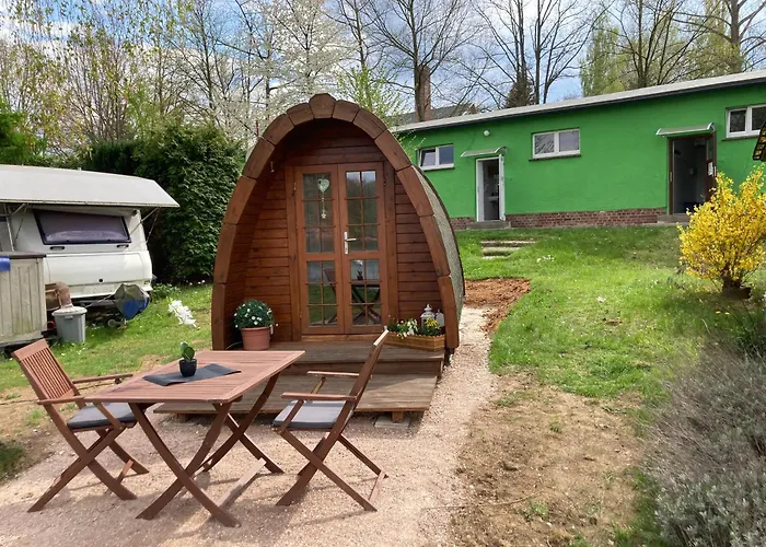 Camping Pod Mit Seeblick dairesi, WEBALU Aile Spası'a 4 km mesafedeki bahçe manzarasına sahiptir. Daire, 1 yatak odası, 1 banyo odası ve ufak mutfaktan oluşur.